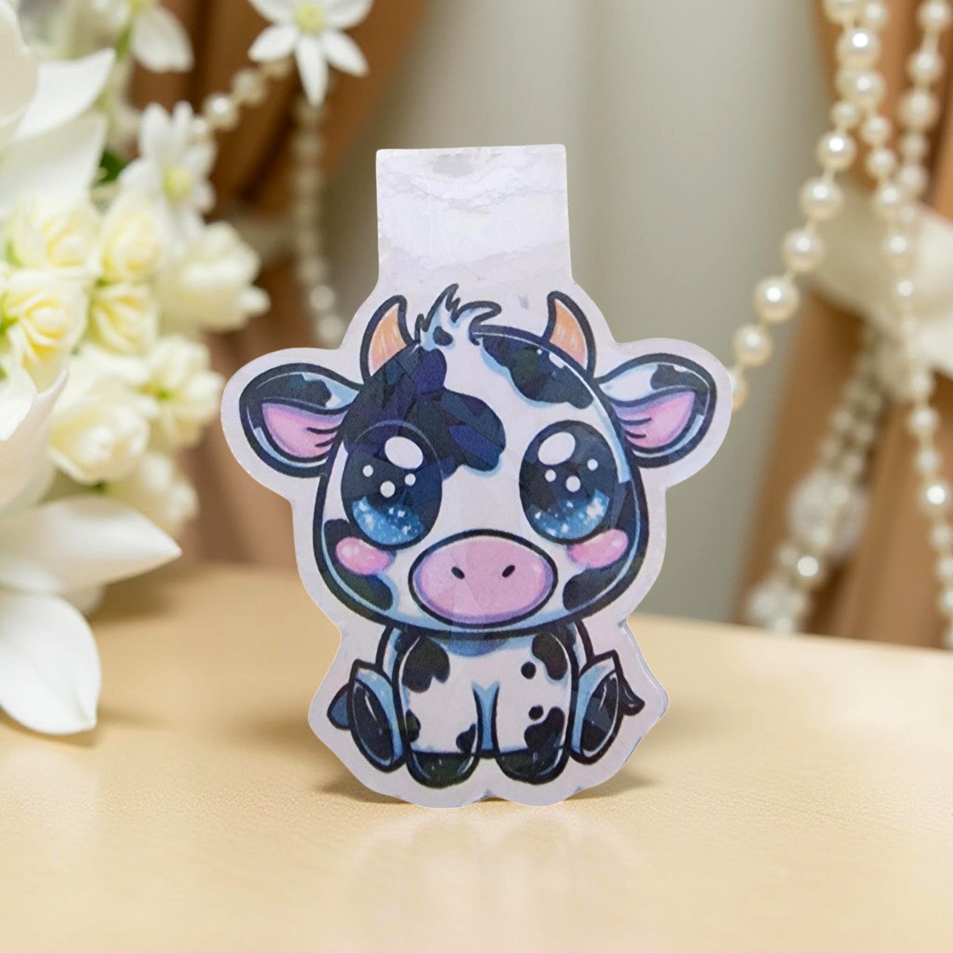 Magnetisches Lesezeichen "Kuh" mit Glitzerfolie – Handgemacht & Funkelnd