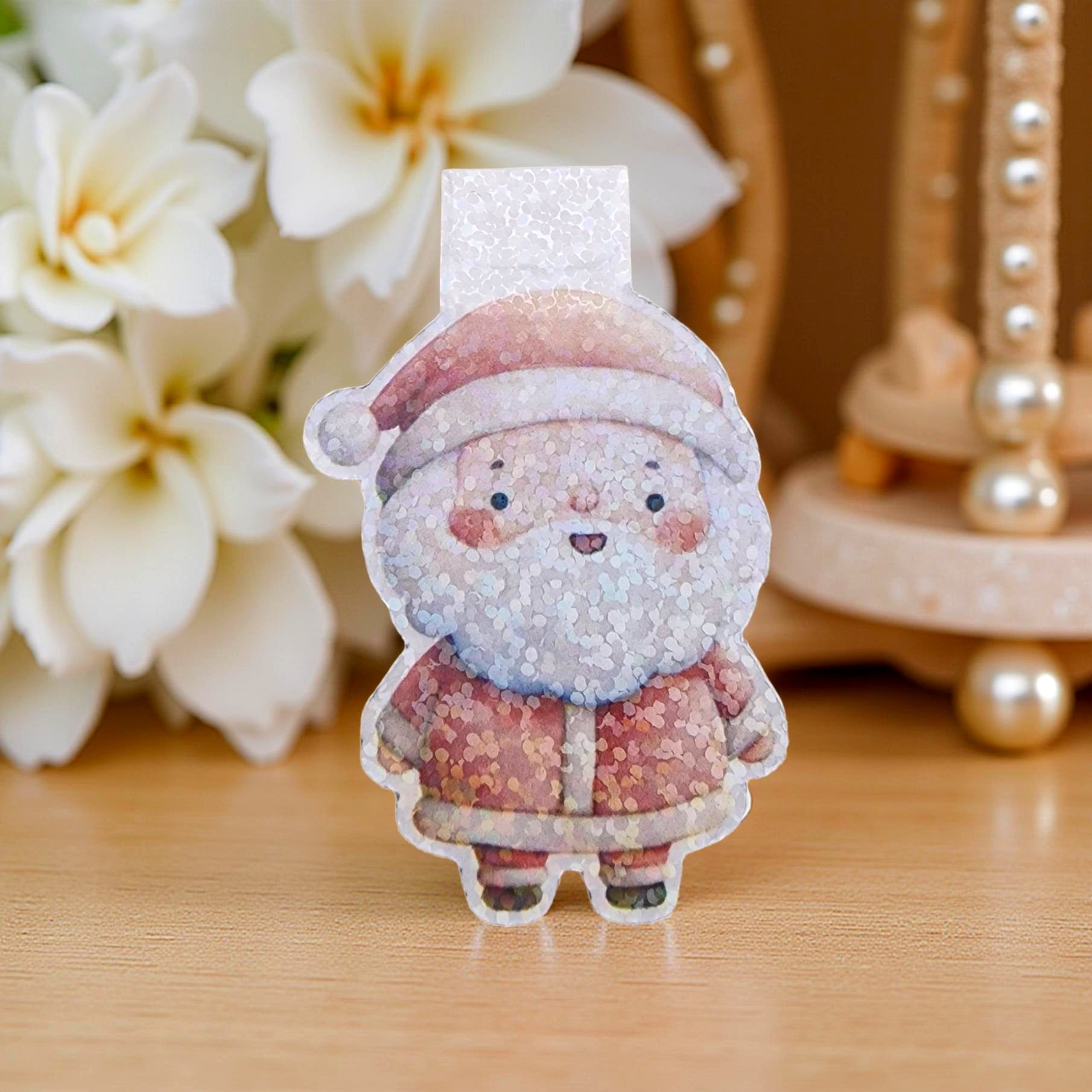 Magnetisches Lesezeichen "Weihnachtsmann" mit Glitzerfolie – Handgemacht & Funkelnd
