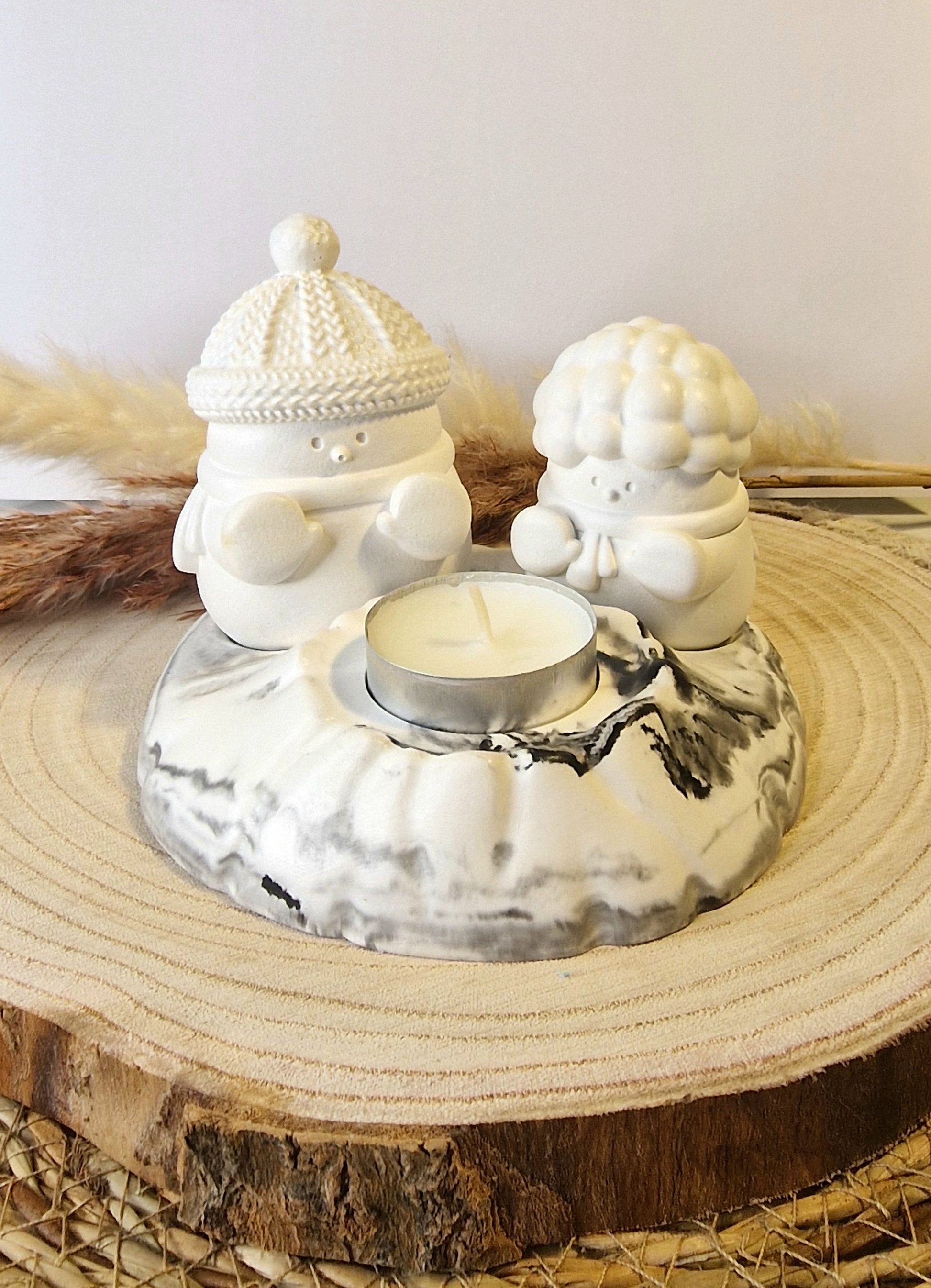 Dieser bezaubernde Teelichthalter mit Schneemann-Paar bringt winterliche Gemütlichkeit und eine warme Atmosphäre in dein Zuhause. Die beiden detailreich gestalteten Schneemänner machen den Teelichthalter zu einem besonderen Blickfang in der Advents- und Weihnachtszeit.