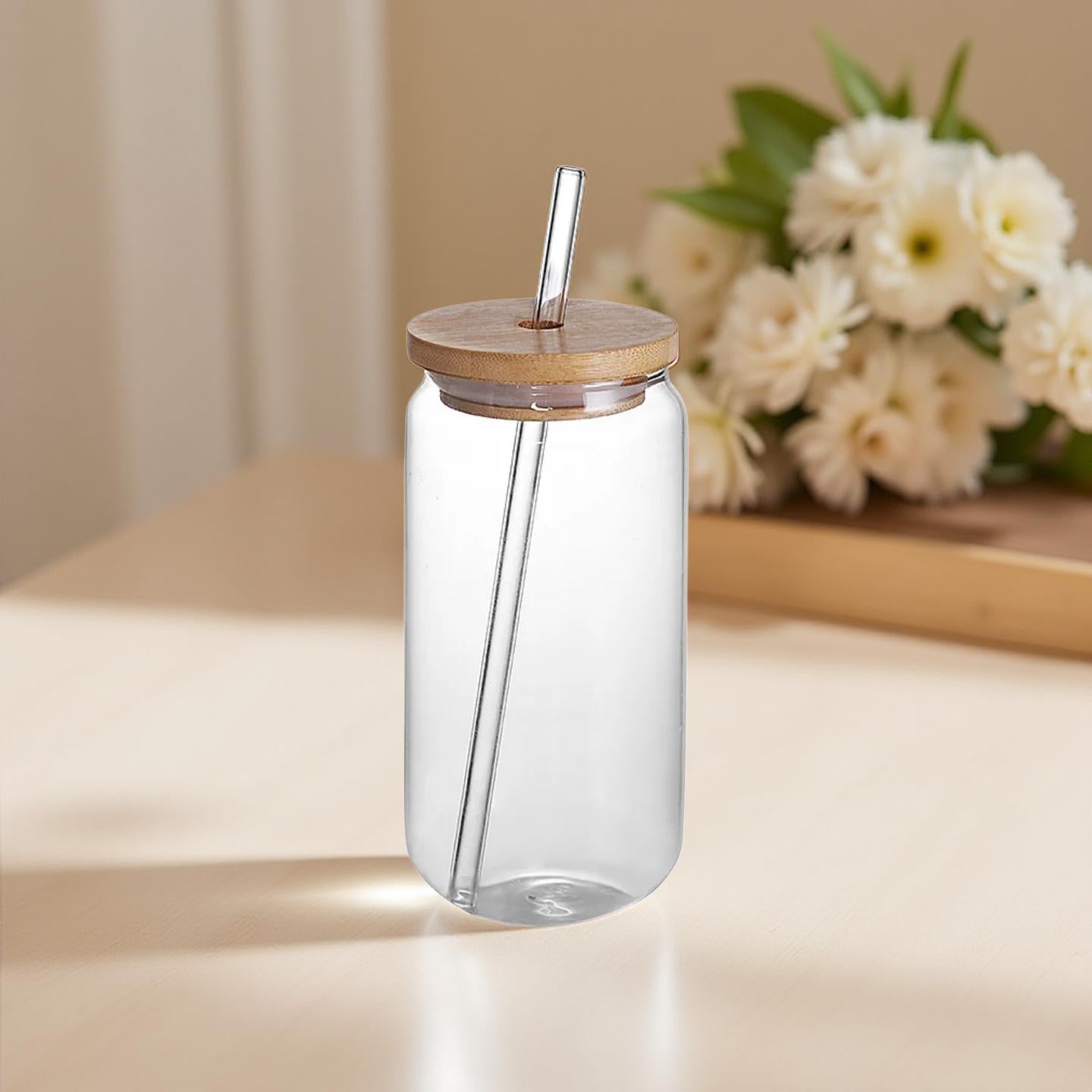 Trinkglas mit Wunschmotiv – Bambusdeckel & Glasstrohhalm